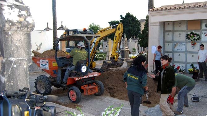 Molta expectació al cementiri de Porreres en el que ha estat l'acte de presentació i inici de les tasques per a exhumar la fossa de Porreres