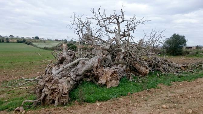 La higuera ha sido y era un árbol vital para los payeses, muchos de ellos alimentaban a los cerdos con estos frutos, siendo también muy importantes para el consumo humano. Pero poco o nada de atención les han prestado a su rápida muerte, ahora solo les queda el fuego y humo, amontonadas y vencidas, no vale la pena ni cortarlas para leña, solo esperan un día soleado para desaparecer, tras una cerilla, sin dejar rastro.