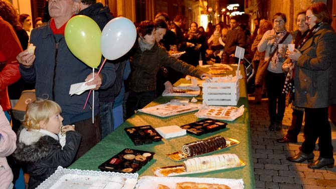 Los comerciantes, cuyos locales permanecían abiertos, invitaron a los presentes ofreciéndoles un estupendo surtido de gastronomía casera, para terminar el recorrido con un buen chocolate con coca. De esta forma los comerciantes querían mostrar su afecto por la fidelidad mostrada a los clientes, en estas emotivas fiestas navideñas.