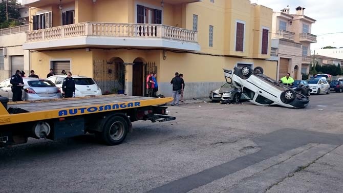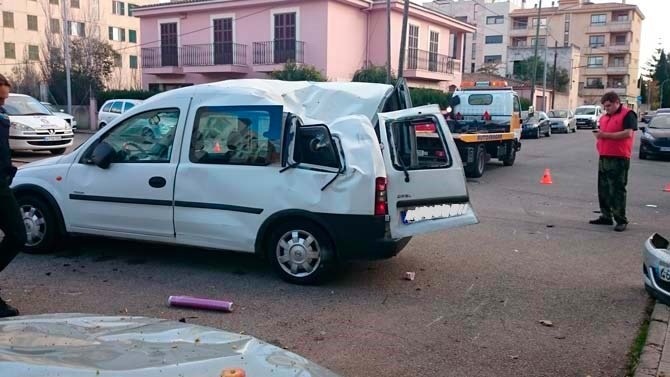 El hecho ha tenido lugar en la esquina de la calle Es Canyar con Josep Maria Llompart, justo al lado de Na Capellera y detrás de la gasolinera. El motivo de la colisión, ha sido al parecer, debido a que uno de los vehículos no ha efectuado el ceda el paso correspondiente, chocando de frente contra la furgoneta, a la cual ha golpeado lateralmente, a raíz del impacto a perdido el control, volcando y quedando girada al revés tal y como puede verse en las fotografías.
