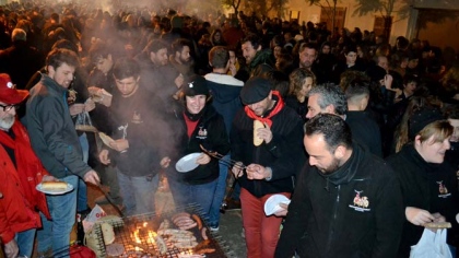 A les nou del vespre la plaça ja era ben plena de veïnats i veïnades que esperaven el caliu de les torradores per poder començar a sopar. El pa, la llonganissa, els botifarrons, la panxeta i el llom no varen faltar damunt les torradores i amb la panxa plena molts dels assistents a la festa varen agrair el vi, la mistela i les herbes que el Patronat de Sant Antoni va oferir a tothom.