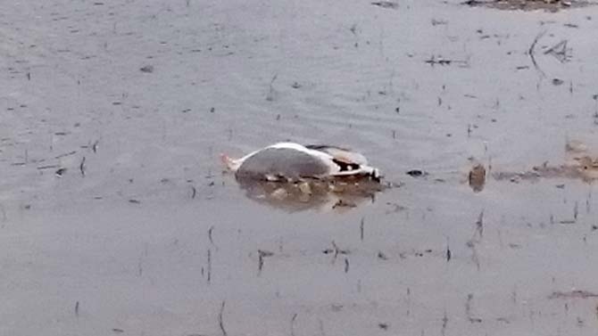 He aquí que hace una semana aparece muerta en la charca una gaviota, pero hoy me ha sorprendido ver una segunda gaviota muerta en la misma charca.