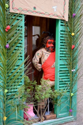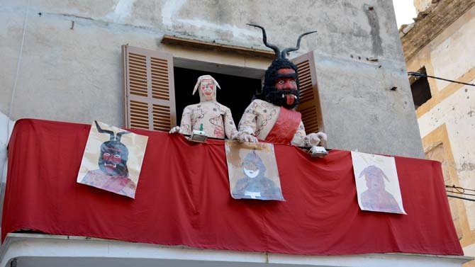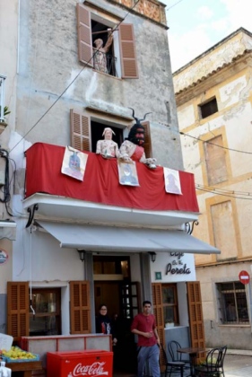Murta, mata, hojas de palmera y flores multicolores de papel realizadas a mano, junto a alguna figura representativa especialmente del dimoni, dan juego para realizar composiciones realmente atractivas y que ensalzan el espíritu de la fiesta dando una alegría especial a las calles de Manacor.