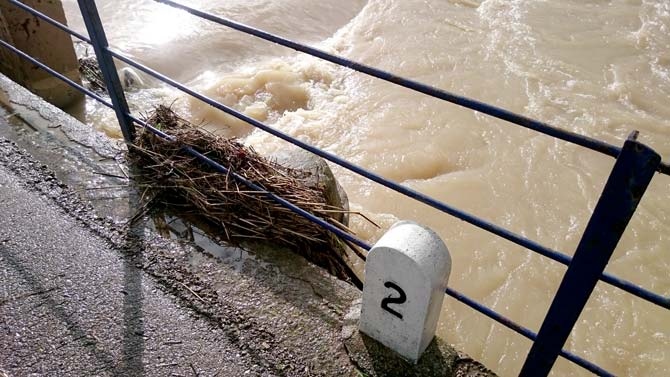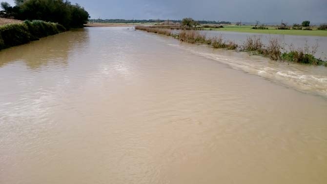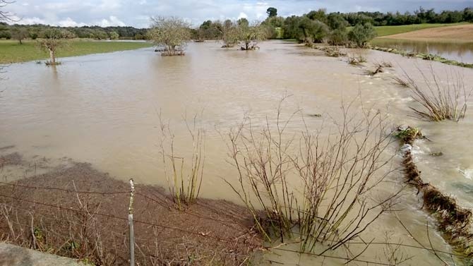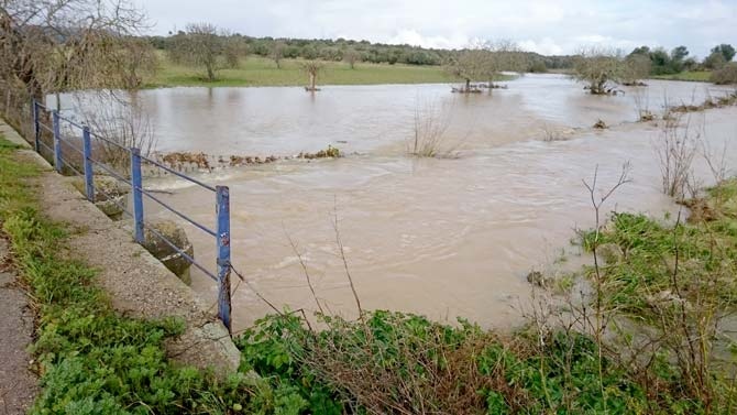 La suerte ha querido que esta mañana no sobrepasara el agua la carretera evitando su corte, la canalización que hay por debajo de la carretera daba cabida a parte del agua que iba llegando, el caudal estaba muy cerca del tope máximo admitido, los campos cercanos actuaban como embalse, gracias a ellos el agua se ha extendido en amplitud y no ha aumentado el caudal, la vigilancia ha sido necesaria por si el agua cortaba la circulación en el día de hoy ante la previsión de nuevas lluvias, un punto peligroso al tener un importante desnivel la carretera a ambos lados. Se recomienda mucha precaución si debe circular por esa zona