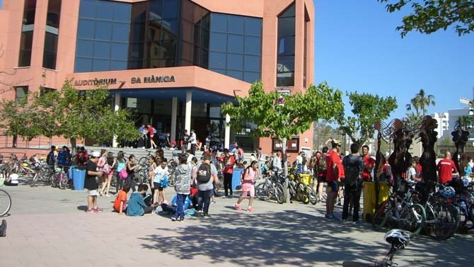 Els alumnes de l’Institut han dissenyat, organitzat i venut unes polseres solidàries. De l’Institut i de les escoles Mitjà de Mar i ses Comes de Porto Cristo han partit 280 alumnes (tots els de l’Institut, a més dels de 6è de les dues escoles de Primària) i 80 professors, i amb la bicicleta han arribat fins a l’Auditori sa Màniga de Cala Millor, on els esperava un bon berenar (fruita, pizzes, ensaïmada i aigua a voler). La resta d’alumnes de les escoles s’ha sumat a la Diada i ha fet una caminada per dins el Port de Manacor