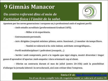Manacor / Se precisan monitores de ocio y tiempo libre…