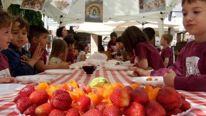 Més de 300 nins i nines de Manacor coneixen la plaça de ses Verdures i omplen un paner d'aliments saludables per a un berenar divertit i deliciós.