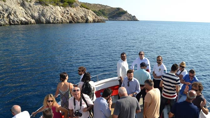 En el marco del décimo aniversario de la Reserva Marina de Llevant, hoy el secretario general de pesca, Alberto López- Asenjo; el consejero de Medio Ambiente, Agricultura y Pesca, Vicenç Vidal; el director general de Pesca y Medio Marino, Joan Mercant; el alcalde de la localidad de Capdepera, Rafel Fernández y el presidente de la cofradía de pescadores, Pedro Mercant acompañados de otros invitados han visitado la reserva con una embarcación que los ha llevado a lo largo de costa de las 11.303,12 ha, desde muelle de Cala Rajada y hasta s'Arenalet d'Aubarca.