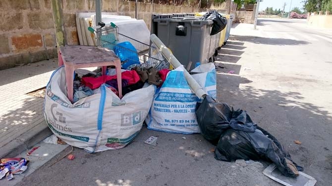 Por lo menos viernes, sábado y domingo, el punto de recogida de basura del camino de Son Fangos presentaba esta muestra de incivismo ciudadano que les mostramos en las fotos.