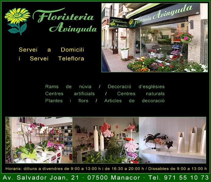 Si desea obsequiar a alguien con un ramo de flores acuda a Floristería Avinguda, el acierto será total y podrá observa la creatividad y delicadeza con que combinan flores y colores hasta conseguir el efecto por usted deseado.