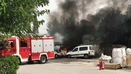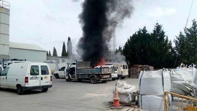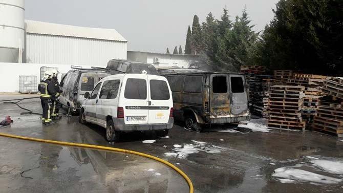 Aparatoso incendio ayer en Porreres con cinco furgonetas quemadas