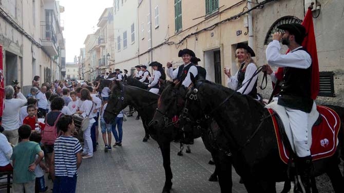 Però dimarts la festa començà de bon matí. A les 11 h tots els que volgueren provar les seves habilitats amb la fona pogueren participar al taller de tir amb fona que se celebrà a la plaça de Ramon Llull. Amb tot no va ser fins l’horabaixa que els cavallers de Sant Jaume, els quals han esdevingut un dels símbols indiscutibles de les festes patronals de Manacor, varen sortir als carrers per recollir el penó de ca la cavallera major. A les 19.45 h tota una comitiva partí de l’avinguda dels Pins de sa Torre, passà per l’avinguda del Torrent, els carrers del barri de Fartàritx i emprengué la ruta que els menà fins davant l’església, on a les 20 h se celebrà l’ofici en honor al patró de Manacor.