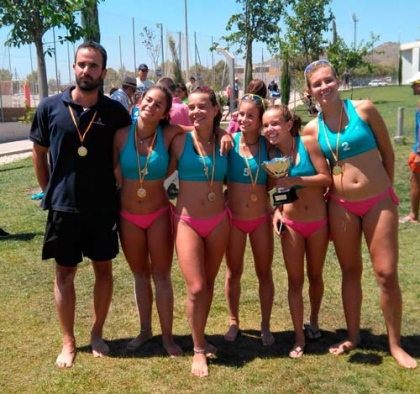 L'equip infantil femeni dirigit per Andreu Catala, i amb les jugadores Laura Galmes, Natalia Binimelis, Bel Amer ( Cide), Maria Piris ( CV Arta), Aina Nadal ( Cide), s'ha proclamat avui matí campió d'Espanya al centre internacional de voleiplatja de Lorca.