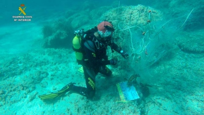 Los GEAS de la Guardia Civil recuperan una red de pesca abandonada en la que había dos tortugas marinas atrapadas