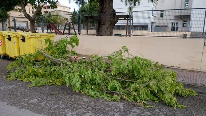 Las ráfagas de lluvia y viento que el viernes por la tarde, durante un breve espacio de tiempo tuvieron lugar en Manacor, causaron algunos daños en el arbolado de la ciudad.