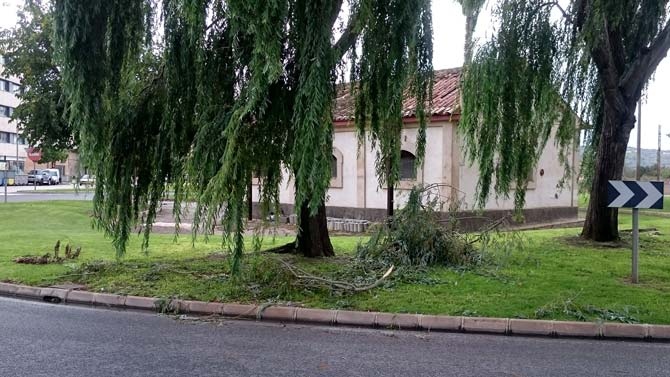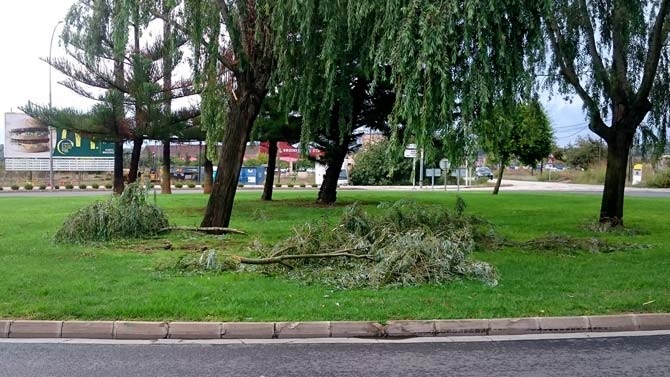 Rotondas y algún colegio vieron como algunas ramas de los árboles, especialmente los sauces, se habían resquebrajado debido a la fuerza del viento.
