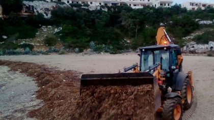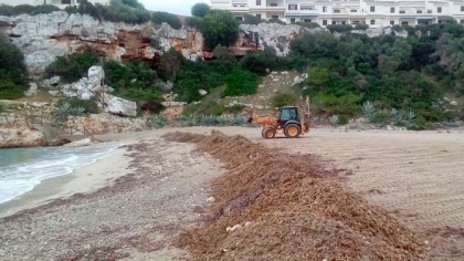 Talment com s’ha fet en els darrers anys durant la temporada turística s’han retirat les restes de posidònia de la primera línia de mar i s’han traslladat al final de la platja.