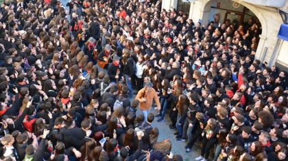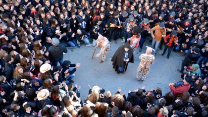 Més tard, devers les dues del capvespre una persiana de la ciutat de Manacor s'obria. Pel portal de cas baciner varen sortir les banyes del dimoni i l’eufòria es desfermà. Milers de persones van esclatar d'alegria perquè la colla de dimonis, sant Antoni i els sonadors sortien de cas Baciner. I és que la sortida dels dimonis marca l’inici d’una de les festes més esperades pels manacorins i manacorines. Després del primer ball una gentada va posar rumb a l'Ajuntament, per presenciar com els dimonis i sant Antoni entraven a la Sala. Com ja és tradició el dimoni ha rebut la vara de mans de la batlessa, Catalina Riera. Tot un símbol per aclarir que és el dimoni dros que governa el poble durant la festa de Sant Antoni.