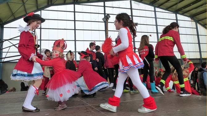 La rueta de l'escola Sant Miquel de Son Carrió s'ha vestit de vermell, un to molt encertat per donar un poc de color al dia plujós i gris; pirates, corets, bombers, dimonions... totes les disfresses han anat directe al poliesportiu degut a la pluja, l'APIMA s'ha encarregat de posar música per ballar i llevar-se el fred.