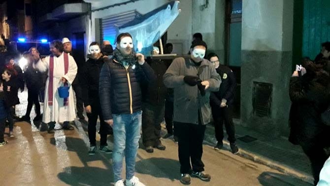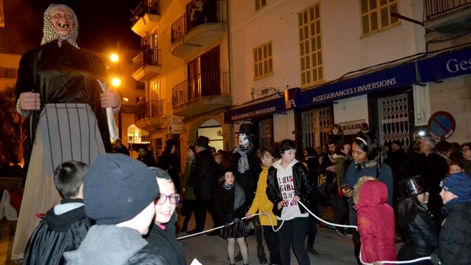 Es tracta de la jaia Quaresma, una figura que durant els pròxims quaranta dies es farà present pels carrers de Manacor. A Porto Cristo la festa va començar amb la vetla de la sardina al Centre de Cultura i tota la comitiva va partir d’allà cap a la platja, on es va enterrar simbòlicament el peix.