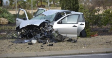 El accidente tuvo lugar al no poder girar el vehículo en la rotonda y subirse violentamente encima de ella, lo que provocó los enormes destrozos del vehículo al chocar la parte baja con el bordillo de la misma.