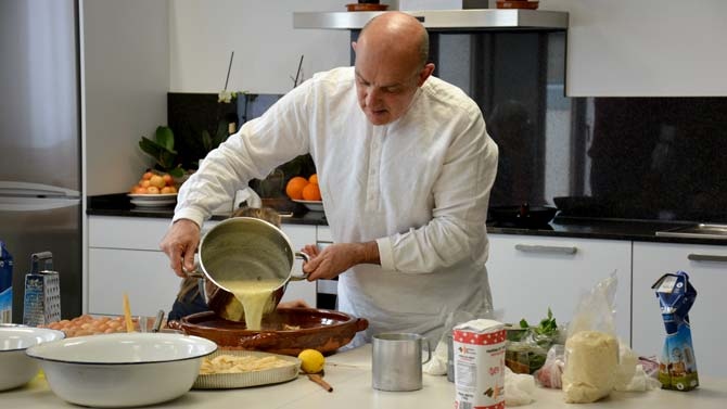 En Tomeu Arbona, el cuiner i investigador de la cuina mallorquina, ha impartit avui dos taller de cuina de Pasqua, primer a l'Espai 36 i després al centre de dia de Son Carrió, en els que ha elaborat tres plats típics de la gastronomia d’aquestes festes, complementats amb una impresionant explicació sobre la historia de cada plat, la seva procedència i evolució en el temps.