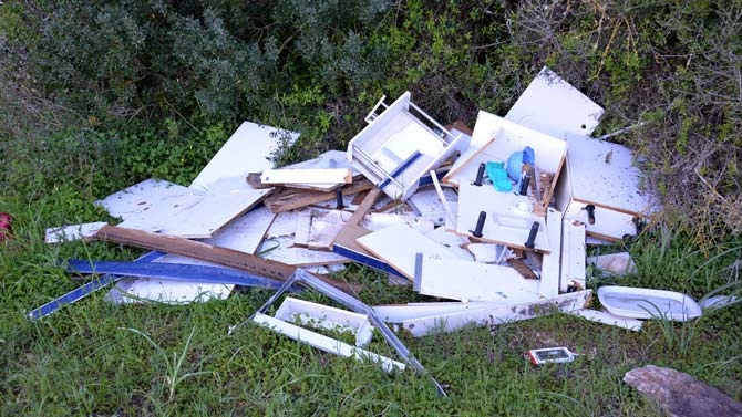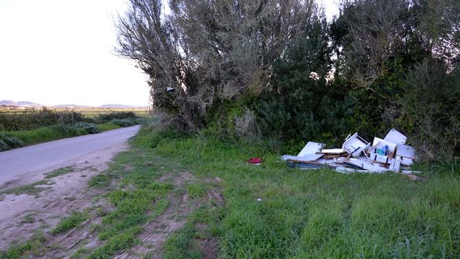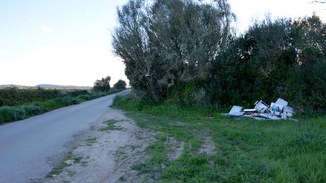 Vergonzoso vertido de restos de muebles de cocina y tableros en el camino de Son Fangos