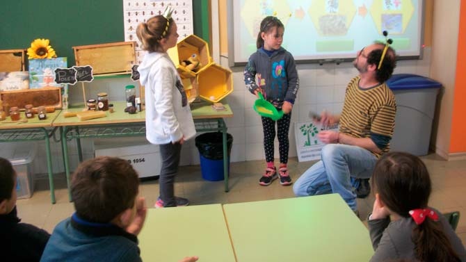 - Descobreix El món de les abelles L’associació per a la divulgació mediambiental, la Colmena Feliz, ofereix uns tallers en els quals, partint de la importància d’aquest insecte com a agent pol·linitzador del medi, l’alumnat ha pogut conèixer el seu món, la seva biologia i el funcionament d’un eixam. una xerrada acompanyada de material audiovisual i de material apícola, que ha permès als infants veure, sentir, ensumar i fins i tot tastar la mel que fan les abelles.