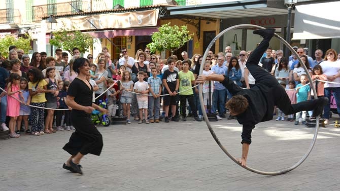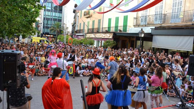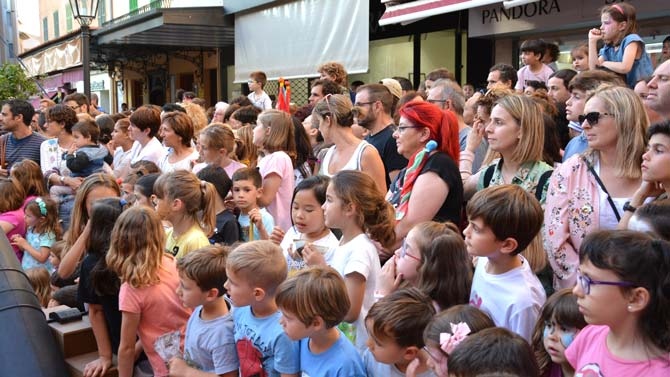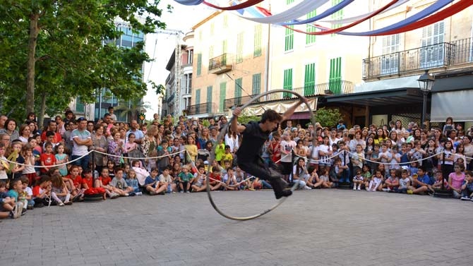 Però aquest enorme circ d'activitats i jocs dedicats als més joves va acabar amb un espectacle enorme a la plaça de sa Bassa. Foc, l'home bala, acrobàcies, dansa, l'home més fort del món i l'actuació estel·lar de Marilen Ribot, l'acròbata manacorina que després d'actuar en prestigioses companyies de tot el món es trobava amb el seu públic per primera vegada. I la resposta dels manacorins i manacorines no va poder ser millor: l'acròbata va fer emmudir tota la plaça des de dalt de l'enorme trapezi que es va instal·lar a sa Bassa per a l'ocasió.