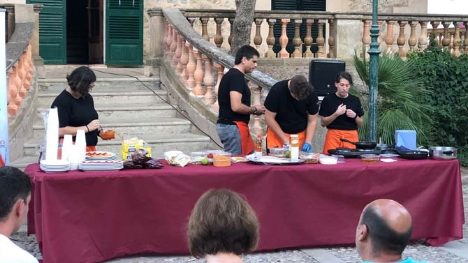 En el marc de les festes de Sant Salvador a Artà, i en estreta col·laboració amb l’Ajuntament, Aproscom Fundació va participar preparant una demostració culinària als jardins de Na Batlessa, on na Lourdes, en Marc i na Leonor, acompanyats per Jordi Cabrer, cuiner del Programa de transició a la vida adulta de l’entitat, varen mostrar en viu i en directe com preparaven diferents tapes: de sobrassada amb mel i ametlla torrada, flam de colflori amb camaiot saltejat, salmó amb salsa de formatge semi curat i compota de poma i hummus amb llima, pebre del “piquillo” i anacards saltejats. El públic assistent les va poder degustar.