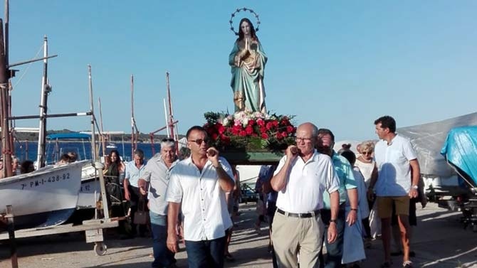 I si durant el cap de setmana les activitats s’han succeït a un ritme frenètic a s’Illot, cal no oblidar la part més tradicional de les festes. Tot i que les barques no varen poder sortir en processó a causa del mal temps, dimecres passat els mariners i les marineres varen encomanar-se a la patrona de s’Illot seguint la tradició. I és que la processó, que enguany va fer-se només pels carrers i el mollet de s’Illot, té l’objectiu de demanar protecció per les barques i la gent de la mar. Una tradició que encara es manté ben viva a s’Illot i en altres punts de la geografia manacorina.