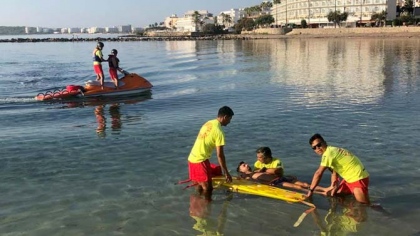 Después de esta primera secuencia, también se ha realizado una pequeña escena de como actuar ante un peligro dentro del mar. En este caso ha sido la detección de la carabela portuguesa. Un incidente, que ha obligado a sacar a la gente del agua y a acordonar la zona de baño.