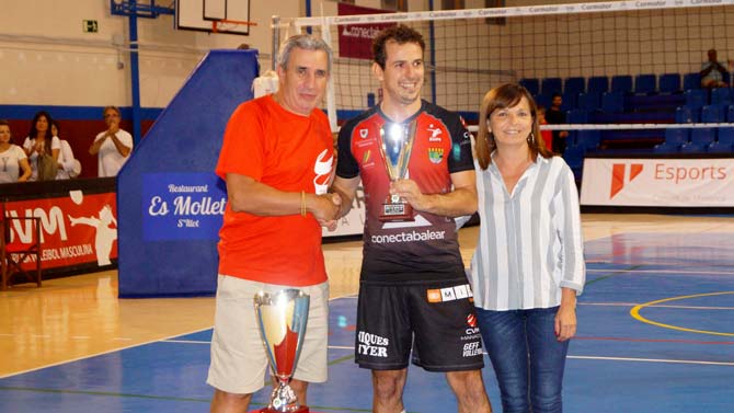 El CV Manacor se reservó la fiesta del sábado para hacer pública la retirada de las pistas del hasta ahora capitán del equipo, Joan Sunyer, a quien rindió sincero y emotivo homenaje por toda una vida de dedicación y lealtad al voley de Manacor. El presidente del club, Andreu Mesquida, le hizo entrega de la camiseta número 13 del equipo y el club destacó su carrera deportiva y su actitud de “fidelidad al esfuerzo y a los valores sociales que representa este club”. Sunyer, que se mostró emocionado y sorprendido por el homenaje y por el calor del público, pasa a formar parte del cuerpo técnico del equipo de Superliga, que dirige Jaume Febrer.