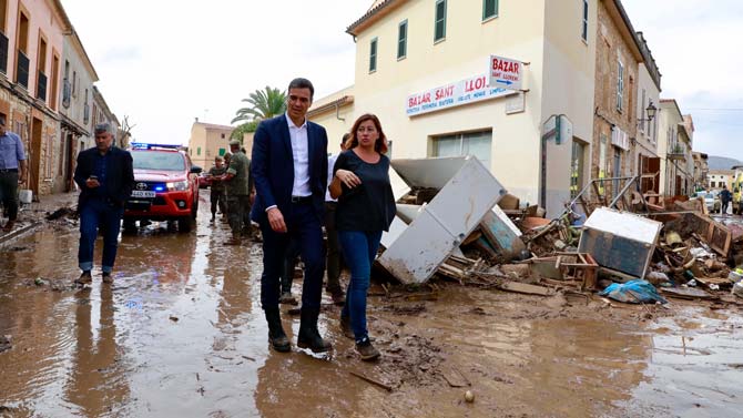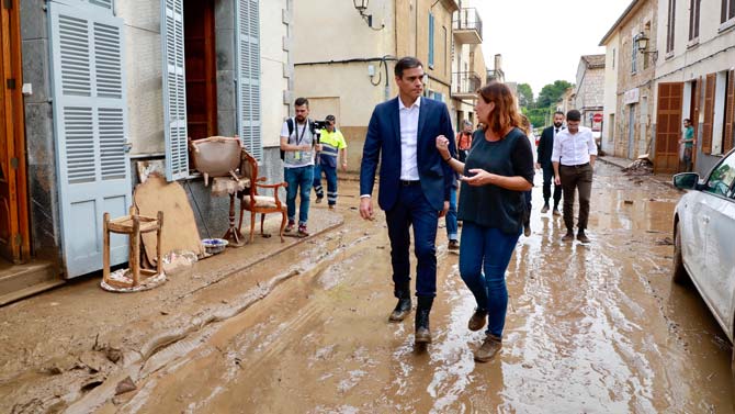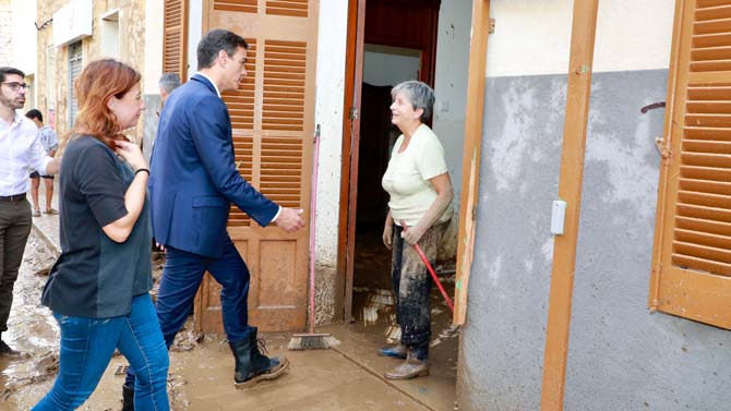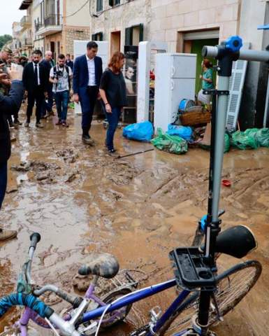El presidente del Gobierno, Pedro Sánchez, acompañado por la presidenta del Govern de las Illes Balears, Francina Armengol, ha visitado el municipio de Sant Llorenç, a raíz de las tormentas e inundaciones de ayer en la comarca de Levante de Mallorca.