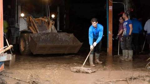 La imagen de Rafa Nadal como un voluntario más, ayudando en las tareas de limpieza de Sant Llorenç tras las terribles inundaciones, está dando la vuelta al mundo, su gesto es compartido y aplaudido por todos.