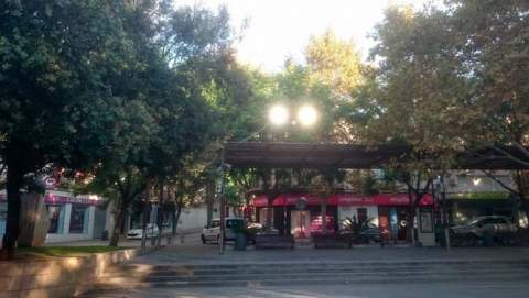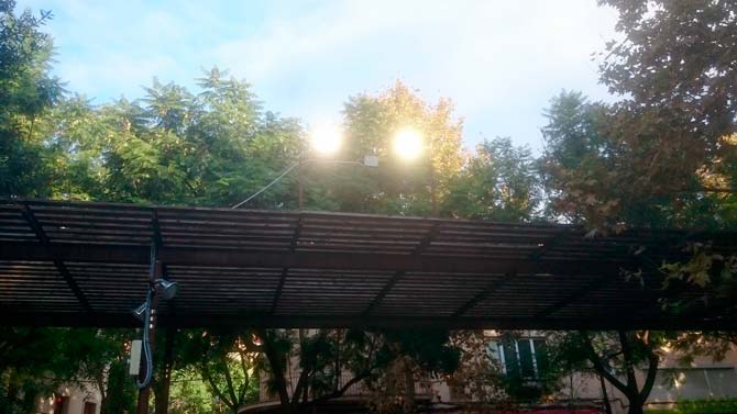 Si de noche la luz es poca en esta plaza, de día le sobra…