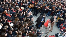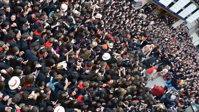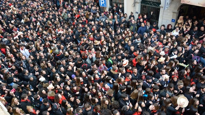 Desde Cas Baciner la comitiva formada por el Dimoni Gros, los 'dimonis petits' y Sant Antoni se dirigieron acompañados de una gran multitud hasta el Ajuntament Vell.