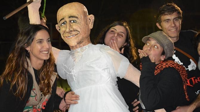 Una de las figuras que más llamó la atención de los foguerons de este año, fue sin duda la imagen que representaba al alcalde vestido de novia con su vara de mando y la glosa alusiva a su renuncia a continuar en la alcaldía.
