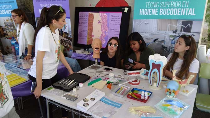 Després de la rebuda i la inauguració a càrrec de l’equip directiu, el Departament de Sanitat i el Departament de Serveis Socioculturals varen presentar l’oferta de FP de l’IES Mossèn Alcover, que consisteix en una FP Bàsica d’Administració, un Grau mitjà de Cures Auxiliars d’infermeria i tres graus superiors: Educació infantil, Integració social i Higiene bucodental. A més es va comptar amb exposicions i paradetes d’entitats col·laboradores dels departaments de FP del nostre centre: Obertament Balears (associació A3 salut mental: es Garrover, Girasol i s’Estel), Creu Roja, Hospital de Manacor, Adalmo, Hides (associació d’higienistes), Serveis socials de l’Ajuntament de Manacor, Infància 0-3 anys del Departament d’Educació de l’Ajuntament de Manacor i l’Espai de dones de sa Pobla. A les 18 hores Paco Campos va impartir la conferència «La interpretació del comportament no verbal per al reconeixement emocional». Finalment es va dur a terme un acte de reconeixement a les empreses col·laboradores, sense les quals tota aquesta feina no seria possible.