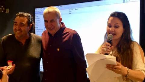 El sopar va tenir moments de records, amb exposicions gràfiques sobre els 30 anys del club. Imatges pel record, però sobretot la fita històrica del primer equip masculí que va assolir l’ascens a I Nacional ara fa just 25 anys. Aquella plantilla de joves jugadors, entre els quals hi figura l’alcaldable de Manacor Miquel Oliver, es retrobaren 25 anys després i reberen el calor i la ovació de les noves generacions i la directiva del club. També es va retre homenatge amb la insígnia d’or, a Joan Pont, per una dedicació de 30 anys al servei del club. Pont, és un dels fundadors del club, part activa dels equips, impulsor de les escoletes del voleibol, entrenador de distintes categories, seleccionadors de les Illes Balears, membre del Centre de Tecnificació balear i de la junta directiva del CV Manacor. Pont va rebre la insígnia de mans del president Andreu Mesquida.