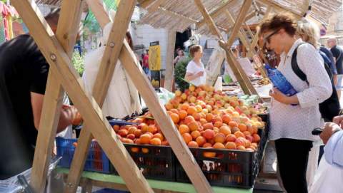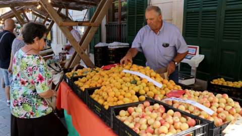 Cientos de personas llenaban la plaza del centro de Porreres para degustar o adquirir las mil y una formas en que se presentaba ese mundo mágico y exquisito del sabor y el aroma del “albercoc”.