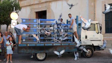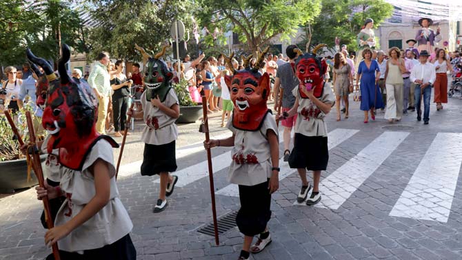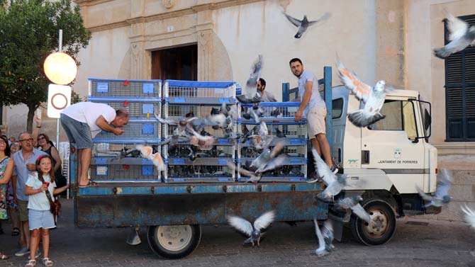 Tras la formación de la comitiva oficial presidida por la alcaldesa Xisca Mora y los regidores en la entrada del Ajuntament, dio comienzo el pasacalles, con la banda de música, caparrots y las autoridades que se desplazaron hasta la plaza de la Iglesia para izar la bandera blanca, símbolo de las fiestas, en lo alto del campanario, procediendose a continuación a la tradicional suelta de palomas y al estallido de cohetes.