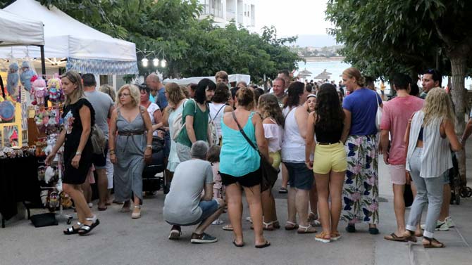 Cientos de visitantes paseaban ayer noche por la Fira Nocturna de s’Illot disfrutando y adquiriendo algunos de los excelentes productos expuestos. La suave brisa marina refrescó el ambiente hasta el punto, que era todo un placer pasear anoche por s’Illot sin el calor estival de los días pasados.