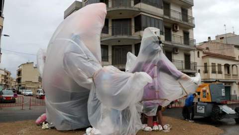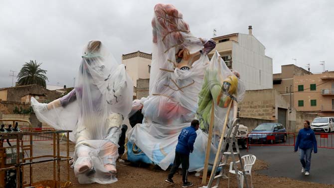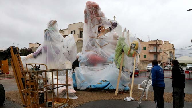 Ayer por la tarde, con algo de retraso sobre la hora prevista finalizó la construcción de la falla Pantomima.