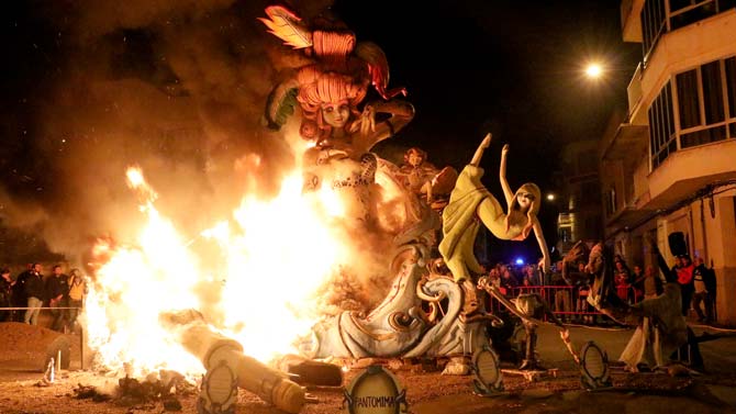 Un espectador de muy corta edad decía “con este calorcito parece que estamos en Sant Antoni” y no era menos cierto, foguerons y fallas son primos hermanos aunque cada uno en su festividad.