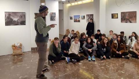 Alumnes d'ESO i Batxiller han visitat, en una prèvia abans de la inauguració avui, l'exposició From Inside Project. Han conegut el testimoni directe del periodista i impulsor del projecte Diego Menjíbar sobre la situació dels refugiats a Europa.