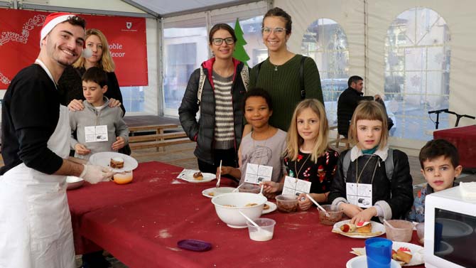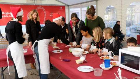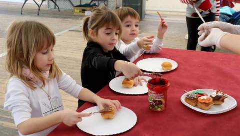 Los monitores han enseñado a los niños participantes la elaboración y preparación de cuatro platos, Pinxos de Fruita, Torró d’Ametlla, Tronc de Xocolata y Cupcake.