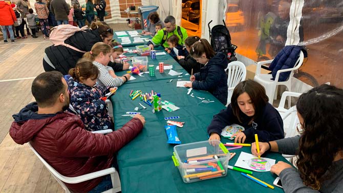 El taller de Decoración de la carpa de Navidad estuvo compuesto por tres talleres que se impartieron simultáneamente, el primero tenía como objeto diseñar adornos como bolas, arbolitos o cualquier otro objeto que se pudiera colgar o pegar en el árbol de la carpa, una forma de personalizar el árbol según las distintas sensibilidades.