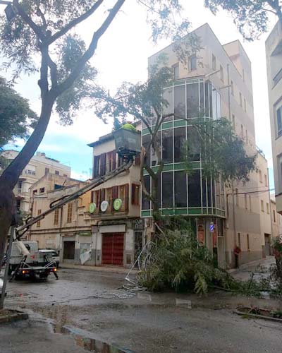 Han caigut arbres i branques a l'avinguda del Torrent, a la plaça del Carme de Portocristo i a la carretera de Cales, entre molts d'altres. Al CEPA Na Camel·la, el vent ha arrabassat una part de la coberta. S'ha sol·licitat la col·laboració dels Bombers.