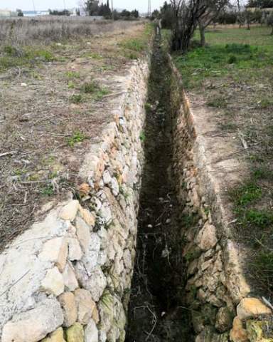 Les tasques de neteja de la síquia de Banyeres de Porreres ha tret a la llum i deixat a la vista el molí d'Aigua des Pont, un bé etnològic municipal catalogat.
